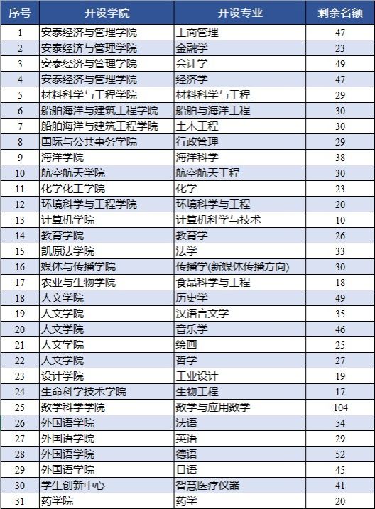 下表为第二轮开放且仍有招生名额的辅修专业信息,供大家参考。