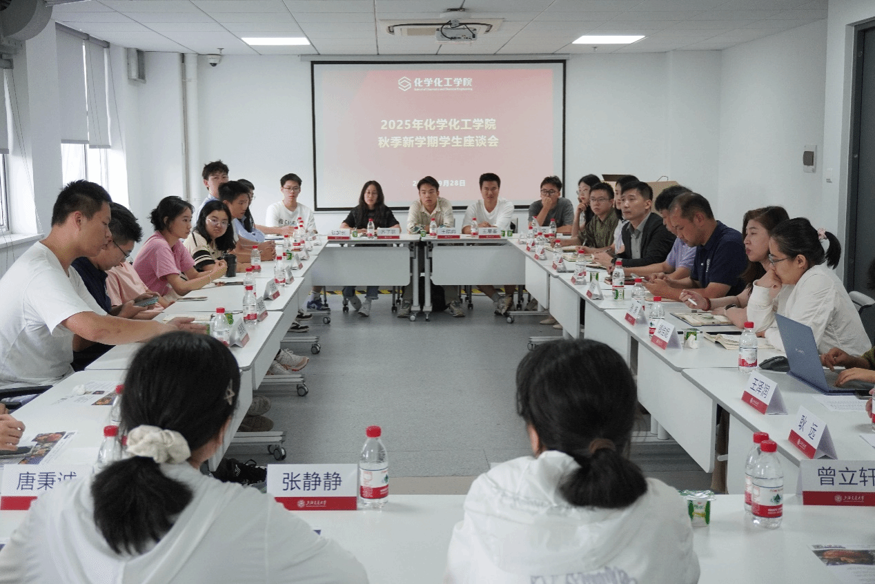 9月28日,上海交通大学化学化工学院在化学C楼418会议室举行2025年秋季学期学生代表座谈会。本次会议旨在全面了解学生在本学期的思想状况与成长需求,深化对思想政治教育规律的探讨,从而进一步提升服务支持与人才培养的质量。化学化工学院副院长王开学、张书宇,党委副书记王华博,各年级思政教师,教务办老师以及各年级学生代表参加了本次座谈会。会议由王华博主持。