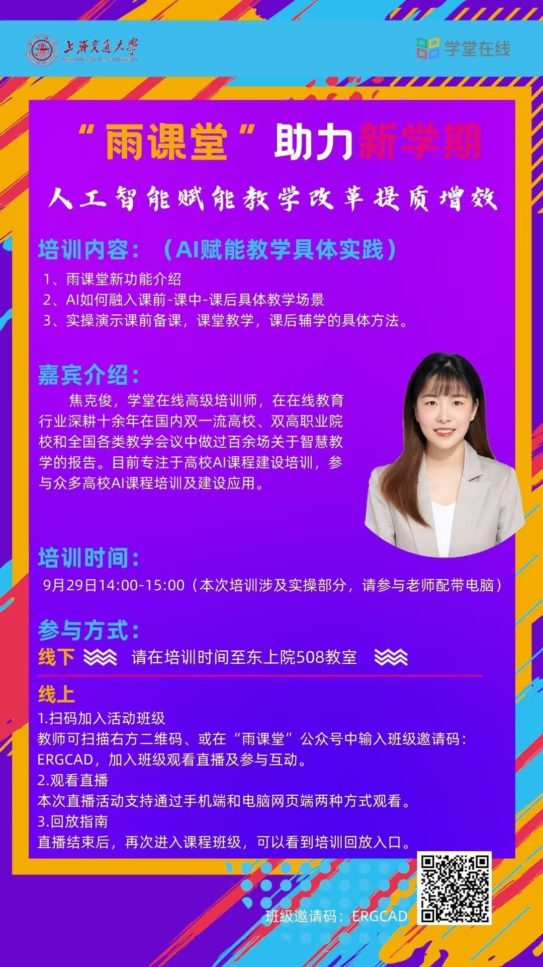 报名地址:请有兴趣参加本次活动的老师于2025年9月29日10:00前报名https://wj.sjtu.edu.cn/q/9w838NSo。