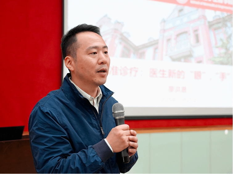 本次讲堂特邀生物医学工程学院院长廖洪恩作题为《智能精准诊疗——医生新的“眼”“手”“脑”》的报告。报告中,廖院长从学科前景、产业动态与研究前沿等多个维度,全面而细致地介绍了生物医学工程这一交叉学科。他重点讲解了手术机器人、医学影像与手术导航等研究方向,激励同学们勇于探索未知领域。